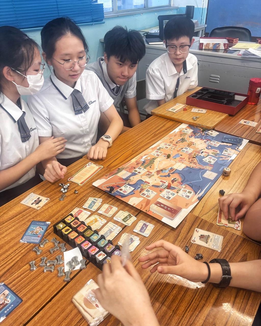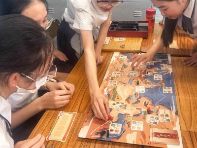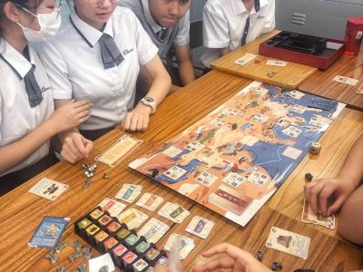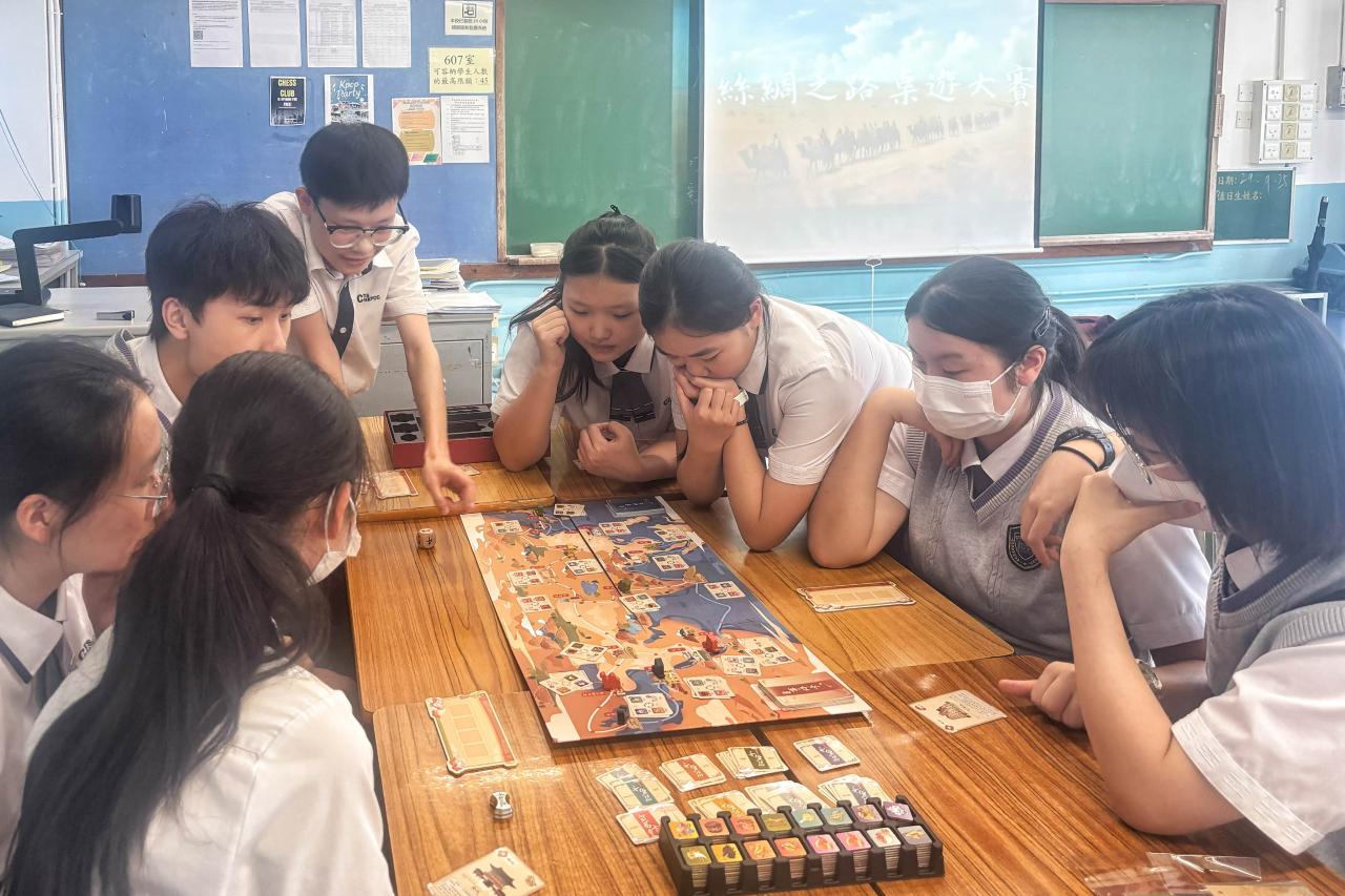國慶月活動之一,就主題「絲綢之路的前世今生」,特舉辦「千年絲路」桌遊大賽,讓同學化身為千年前的商人,騎上駱駝、乘上船隻,走訪陸上和海上絲綢之路的沿途城市,體驗一次營商的感覺、困難和樂趣。同學在遊玩過程中需要觀察和分析貨物的價格走勢從而將利益最大化,更會遇上不同的「事件」,面對不同的挑戰,均能讓學生明白絲綢之路的發展與興盛並不容易,要學會維護國家的經濟安全。