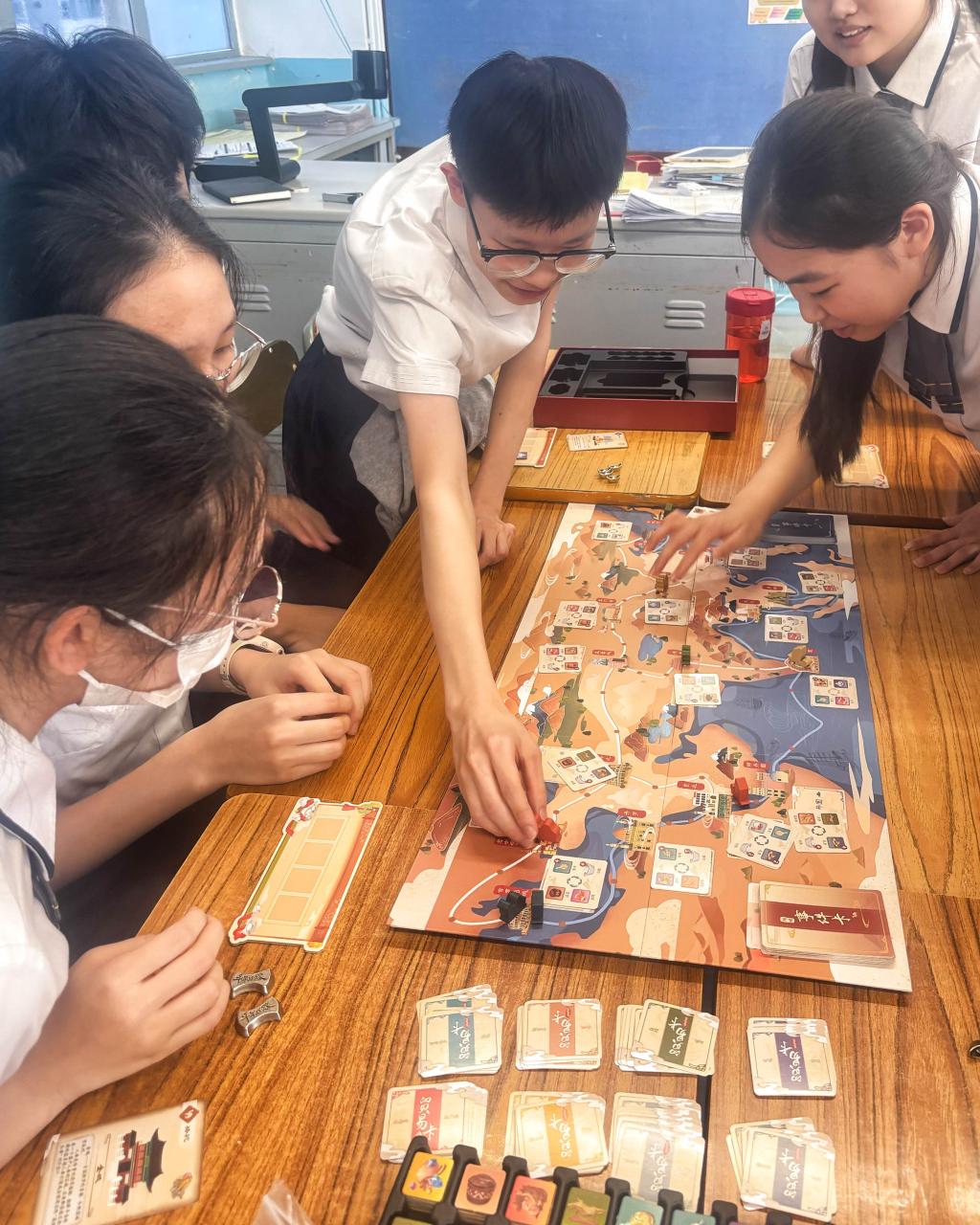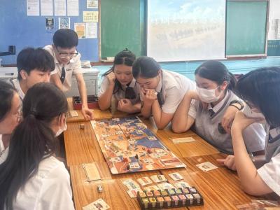 國慶月活動之一,就主題「絲綢之路的前世今生」,特舉辦「千年絲路」桌遊大賽,讓同學化身為千年前的商人,騎上駱駝、乘上船隻,走訪陸上和海上絲綢之路的沿途城市,體驗一次營商的感覺、困難和樂趣。同學在遊玩過程中需要觀察和分析貨物的價格走勢從而將利益最大化,更會遇上不同的「事件」,面對不同的挑戰,均能讓學生明白絲綢之路的發展與興盛並不容易,要學會維護國家的經濟安全。